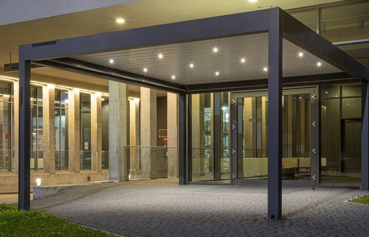 Lamely obmedzujú slnečné svetlo a otáčajú sa pomocou diaľkového ovládania. V zavretom stave tvoria lamely vodotesnú strechu, ktorá Vás chráni pred dažďom. Voda je odvádzaná systémom integrovaných bočných žľabov a odtokov esteticky skrytých vo vnútri konštrukcie.